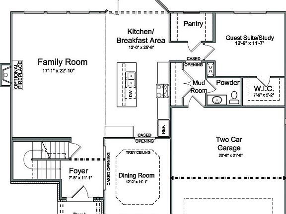 The Jackson II offers a spacious open floor plan five bedroom and three bath. Downstairs features a guest suite with a bay window and a full bathroom. The Family room and breakfast room overlooks the back yard with a 16X10 patio. The centrally located kitchen is open to the family room and breakfast area good for traffic flow and entertaining. A large pass-through utility/mudroom is located on the first floor, and includes a back hallway convenient to the bathroom and kitchen.