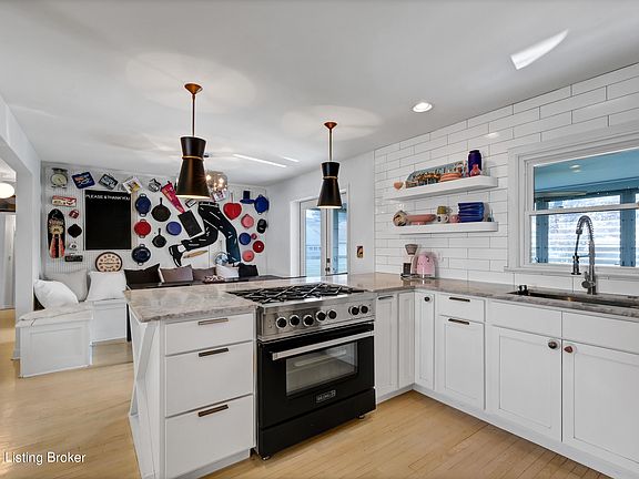 With nods to vintage this completely remodeled Bedford stone ranch is fun, open and whimsical. WITHIN 2 BLOCKS of Seneca Park and close to restaurants and shopping you will enjoy this location. This home lives SO easy! FURNACE AND AIR REPLACED SUMMER '23. Hardwood stretches through the main floor with the exception of the baths. Black and white is always in style as this home exemplifies in both hall and primary baths. Built in seating in the dining area invites your family and guests to linger. Kitchen appliances will remain as will the washer and dryer. The first floor also includes a 3 season room, wonderful for quiet times and play. In the lower level one can invite ALL your friends to enjoy this big open space. The garage is tandem style and it's HUGE. Spacious backyard is fenced and ready for your enjoyment.