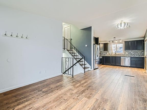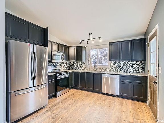Beautiful tri-level home in Bennett. Open floorplan. Kitchen has beautiful granite countertops. Both bathrooms have a nice tile surround. Whole house has waterproof and scratch resistant laminate flooring. Primary bedroom is spacious and has a wall to wall closet. Family room has a wood burning fireplace. Front yard has an extended concrete driveway which fits 2 cars. Backyard is spacious and has a patio with an outdoor awning, a wood border all the way around with gravel fill for a great surface for entertaining. Big storage shed in back corner for all your yard needs. Roof is a few years old, it has newer gutters and some newer siding. Close to I70 and just 20 min away from aurora. Just 1 mile away from grocery store.