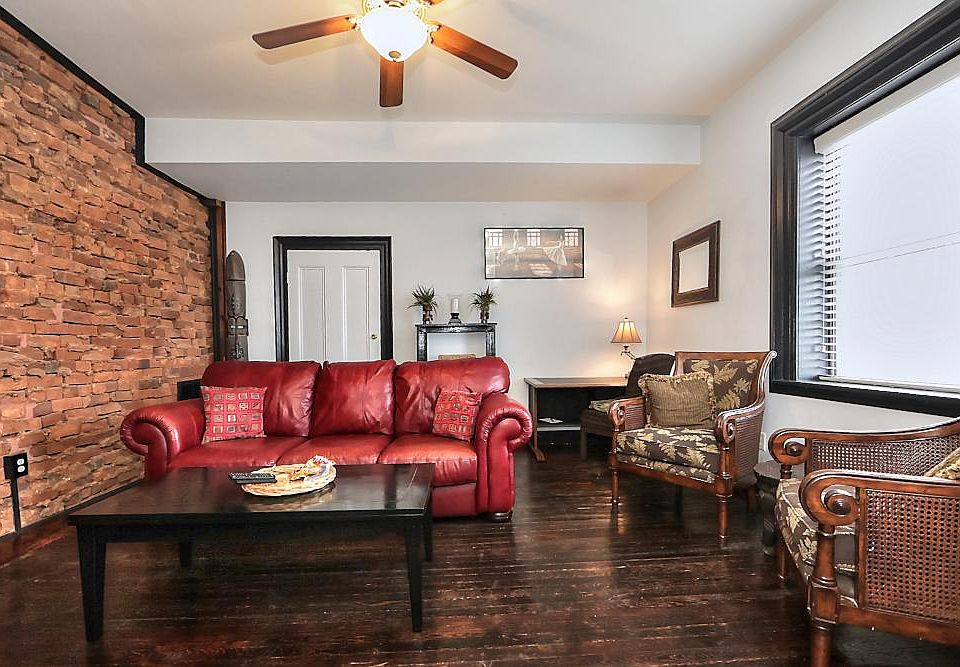 The Tosca Suite is a 2-level renovated loft-style space in a historic mansion atop downtown Lynchburg with panoramic views of The City from its large private back patio. The space includes hardwood flooring in the den, porcelain tile in the kitchen and bath, a spiral staircase between levels, an enclosed clawfoot tub, ceiling fans throughout the space, and is being least fully furnished - as seen in the photos. The heart of downtown, and its myriad restaurants and venues, are within walking distance. Owner pays for water, sewer & trash; tenant pays for electric; no gas on the premises. Covered parking is available in The City of Lynchburg's Clay Street which is covered, only 50 yards from the suite's entry, and is safe (shared with the police department) for $50/month. Smoking is allowed outside, on the private patio, but not inside the building.