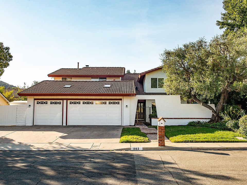A private front courtyard welcomes you to this fantastic expanded, light & bright executive family home in a highly desirable area of the Conejo Valley, offering 5 bedrooms, 4 baths, family room, living room, dinning room, open kitchen. The downstairs bedroom would make a perfect home office. Master bedroom suite & an additional en-suite bedroom. The home is Light & Bright with skylights solar tubes, dual pane windows, and french doors & french door sliders, newer carpet and paint inside and out! Spa tub downstairs, plus an inviting entertainers backyard with gas firepit, pool, spa & large side deck. Possible room for RV, 3 car garage carpeted garage with extra storage. This is a one of a kind home you don't want to miss. Close to the schools, freeway, Oaks Mall, restaurants, shops, grocery stores, hiking and mountain bike trails.