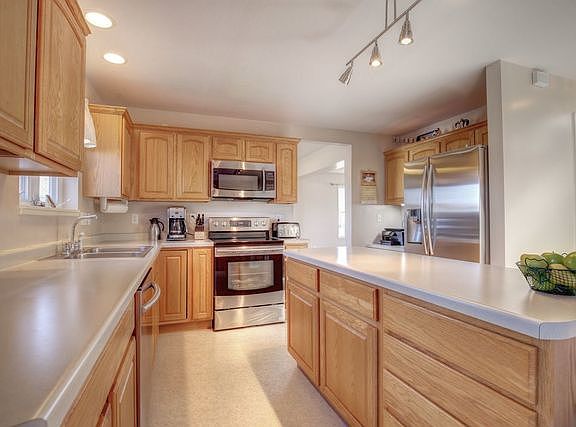 Fresh, clean, bright and ready to move in! This 2-story home is on a corner lot and located in the Unit 7 School district. What a gem with a soaring, 2-story entrance, new carpet, hardwood floors and fresh paint in neutral colors. The kitchen looks out on a huge, fenced backyard which opens through the breakfast nook to the family room. Upgraded stainless steel appliances and generous cabinet space are extra plusses in this home! In the family room you'll find a vaulted ceiling and gas fireplace with blower fan to keep you cozy throughout the season. Upstairs you'll find a great master suite with walk-in closet, private bath and large bedroom. Additional bedrooms are spacious with good closet space. The basement offers room to expand with an egress window and is currently used as a rec room and storage. Over-sized, 3-car Garage - this space is huge with an extra bump out for storage.