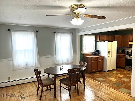 Don't miss having a look at this home located in one of Dillon's established neighborhoods. You could not be more conveniently located to access schools, a terrific park and within walking distance from downtown! This house is on a corner lot and features a lovey main level- dining area, kitchen and living room in the main living space. Lovely wood floors in the dining area and tile in the kitchen. Full bath and bedroom on the main level and extra room for entry/office near the rear entrance. Downstairs includes a family room with laminate flooring and two bedrooms with egress windows. A laundry room, utility room and second full bath complete the downstairs. A sizeable deck off the kitchen gives you room for the BQ and the fenced yard is ready for the family pet. A detached garage has an attached workshop/extra storage room. This property is one of the in-town Dillon residences that has its own well- use it to irrigate your lawn and save on your water bill.