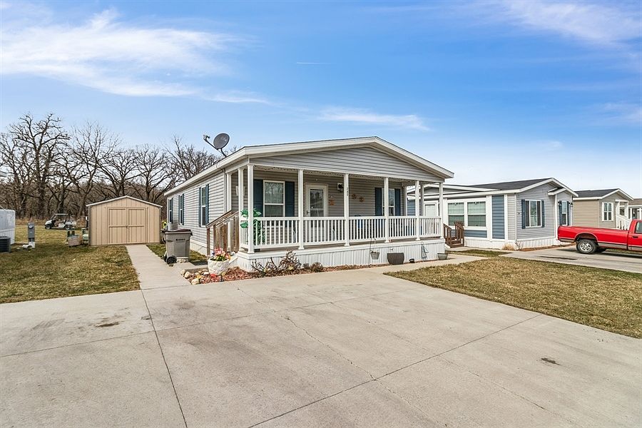 This all electric 2018 Champion in Southridge Estates has 3 beds and 2 baths with 1352sqft. Front kitchen/living room layout, all appliances stay with the home. Tile backsplash in kitchen & window valance boxes with matching curtains make this feel more like "home". 10x10 storage shed for yard & extra storage. Financing options available. Lot rent $540/mo plus utilities. Background check and park deposit required prior to possession. Pet restrictions per park.
