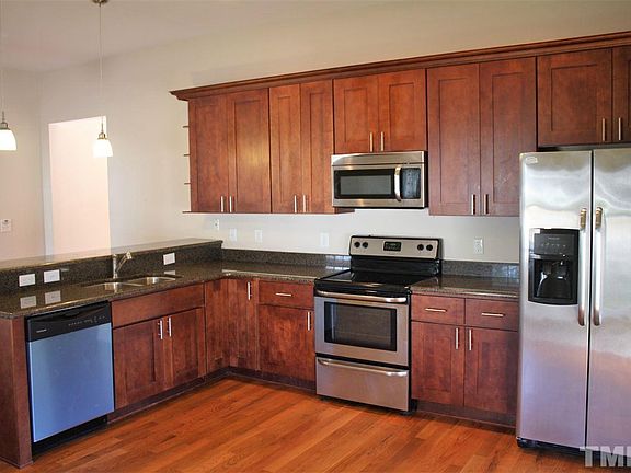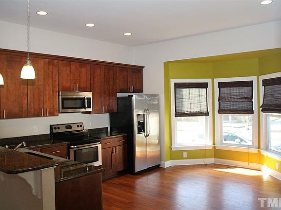 Avaiable Now! Pets nego w/fee. Rebuilt in 2012, this home is just 9 blocks from Fayetteville St downtown. Enjoy skyline views from the rocking chair front porch. Beautiful hardwoods throughout & tiled bathrooms full of upgrades. Kitchen is fully loaded with granite counter tops, SS appliances, dark wood cabinetry & breakfast area bay window. Master suite has double closets, sep garden tub/shower & private WC. Ceiling fans throughout, lots of closet space & fenced backyard!
