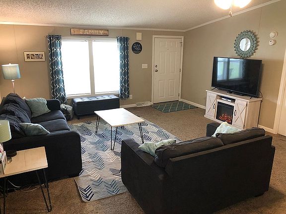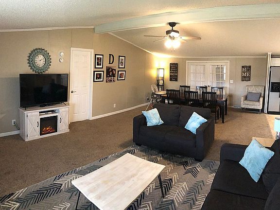 Beautiful, move-in ready 3 bedroom, 2 full bath manufactured home on a large corner lot in a quiet neighborhood. Includes a bonus room that makes a great den or office. This home was completely renovated in 2010 and features a beautifully updated kitchen with a large island and skylights that let in plenty of natural light. Spacious master bedroom with attached huge master bathroom includes two separate vanities, large garden tub, separate shower, skylight and his & her walk in closets. This open-concept home offers a large family room and dining area with vaulted ceilings and french doors leading into the office/den. Attached 2 car garage offers plenty of cabinet space for extra storage. Fenced in backyard includes a storage shed and a fire pit. Come and sit on the covered front porch and enjoy the peaceful well-maintained neighborhood as golf carts drive by in this charming community. Facts & Features: -New roof installed 2018 -New water heater 2019 -New air conditioning unit 2016 -Ceiling fans in all 3 bedrooms, family room and office/den -Water softener -Washer and dryer -Dishwasher -Microwave -Oven with glass-top stove -Refrigerator/freezer