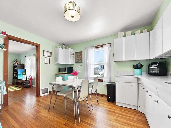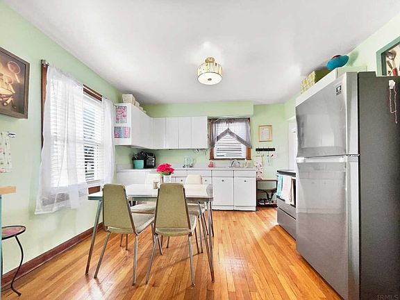 When you arrive at this home you immediately notice the nice curb appeal that this home has to offer with the covered front porch and nice landscaping. The backyard features a new patio area and a large metal-sided garden shed. Upon entering you will see just how clean and well-kept this home is with it's recently installed powder coated 1950's style kitchen cabinets with a new countertop, original hardwood floors, fully updated bath with LVT flooring, all new paint throughout, new windows, new furnace & a/c units, new gutters, and both exterior and storm doors are new too! The appliances are just 1-year old.