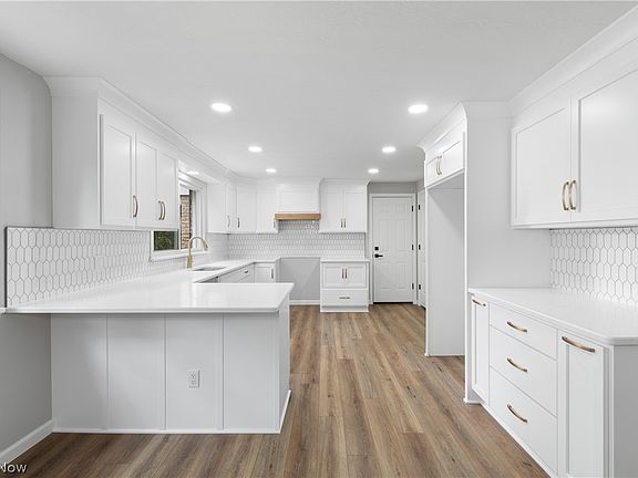 This is the one you’ve been waiting for! Welcome home to this beautiful colonial in North Canton that’s been completely remodeled from top to bottom! Situated on a corner lot on a quiet street, this home is just minutes from shopping, dining, and entertainment around North Canton Square and Washington Square, with easy access to Belden Village and I-77. Nearly every inch of this home has been completely updated with high end finishes, and the quality is evident throughout. The main level features a large living room with a stone fireplace, dining room, and a stunning kitchen with quartz counters, brand new cabinets, and a full tile backsplash. Off the dining area is a 3-season room with vaulted ceilings and convenient access to the multi-level deck out back. The first floor also includes an office that could be used as a 5th bedroom, and an updated half bath. Head upstairs to find 4 sizable bedrooms with ceiling fans, including a master suite with a private bath, and another massive bedroom with a convenient laundry closet. A 2nd full bathroom is shared by the other 3 bedrooms. The partially-finished basement offers a spacious rec room and a 3rd full bathroom. There’s tons of storage space within the 3 storage rooms on the other side of the basement, plus a walk-up staircase to the beautifully-landscaped backyard. Other features include a heated 2-car garage, storage shed with a new metal roof, and an additional gravel parking area. This truly feels like a brand new house, and there’s nothing left to do here except move right in. FREE Home Warranty included for added peace of mind! Call today for your private showing!