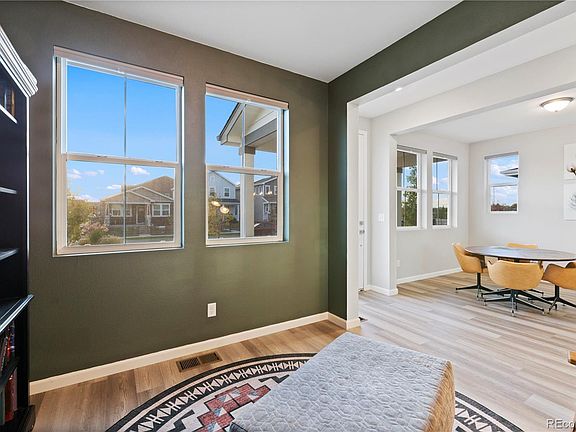 Welcome home to this beautiful 4 bedroom, 3 bathroom, oversized 2 garage home located just 7 minutes from Old Town! This home sits on a corner lot and has tons of natural light throughout! Enter this home through the fenced and xeriscaped front yard! Enjoy the spacious front patio with peaceful views! Head inside to find beautiful Luxury vinyl plank flooring throughout the entire main level! The main level office has great natural light and views of the mountains! Enjoy the spacious formal dining room with plenty of room for all your great get togethers! A chef's kitchen stands at the center of this home, complete with quartz countertops, sleek cabinetry, stainless steel gas cooktop with hood, double wall oven, stainless steel dishwasher, stainless steel refrigerator, built-in microwave, and a walk-in pantry! The huge island offers plenty of seating! This kitchen is a cooks delight! The large living room adjoins this great kitchen and is large enough for all your entertaining needs, or just hanging out! Walk-out to your large private patio, with plenty of space for your grill and patio furniture! There is a 1/2 bath conveniently located to finish out this level! Head upstairs to find the private owner's suite which boasts a spacious walk-in closet and a private bath with modern finishes, while three additional secondary bedrooms share a full bath. The convenient laundry room completes the second floor! The community will feature walking trails, a park, wetlands, and a dog park scheduled to be completed in 2026. With a prime Fort Collins location, you are just minutes from CSU, I-25 and only a short drive or bike ride to the breweries, shops, and restaurants of historic Old Town. With A/C for those warm Colorado summer days, a fully paid off solar system and an electric car charging port in the garage, there is nothing left to do here but move in!
