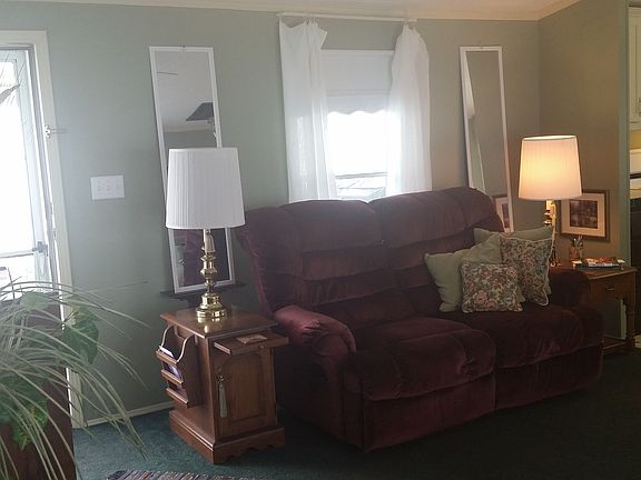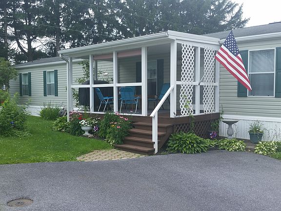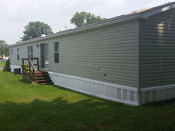 Enter into this well maintained 1995, 16 x 72 Imperial home. Enjoy the front porch with covered awning to sit and enjoy the outdoors with the mature landscaping. Walk into an open floor plan with spacious living room. Kitchen has an island with overhang and seating up to four. Newer kitchen appliances include refrigerator with bottom mount freezer, gas range, dishwasher and microwave. Washer and Dryer also included. Dining area is located in corner with built in hutch. Double hung doors to entrance of Master suite that has large closet. Master Bath has double vanity, linen, separate shower and also a garden tub/shower. Bedrooms 2 and 3 are located at opposite end of home with the main bath. There's a wood pellet stove include that will save on heating costs. Home location has easy access to walking paths at Greenfield Corporate Center. Private parking in front of home. An 8 x 10 shed is also included.