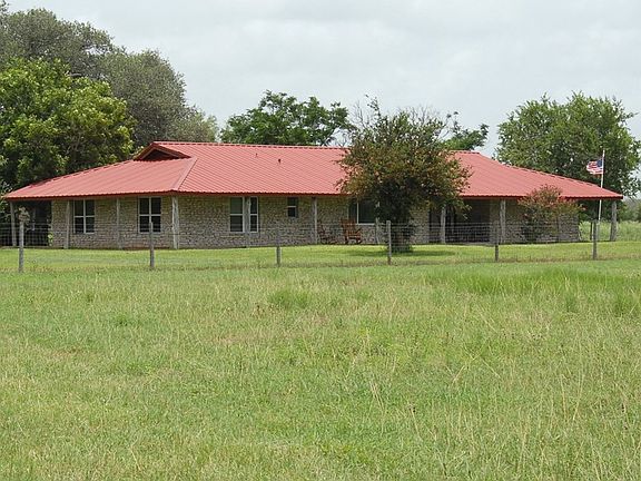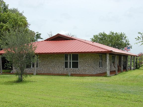 230.02 acres Twin Oaks Ranch, 802 Gill Ranch Rd. is a cattle/ recreational ranch with 3 bedroom, 3 bath rock facia home with an attractive recent red metal roof. The ranch style home has wrap around porch on south and west sides. Flooring is carpet and tile. 2 car carport & large oaks in yard. Ranch has a set of working pens and is cross fenced. Very rolling terrain with excellent game habitat w/app. 75% native brush. One large water trough feeds 4 pastures fed by submersible near home. Three stock dove tanks provide water for game and cattle . Game includes deer, turkey, quail, dove and feral hog. There are several deer blinds and feeders. Fences are good to excellent. A high fence is on north and north eastern boundaries. Owners minerals are negotiable.