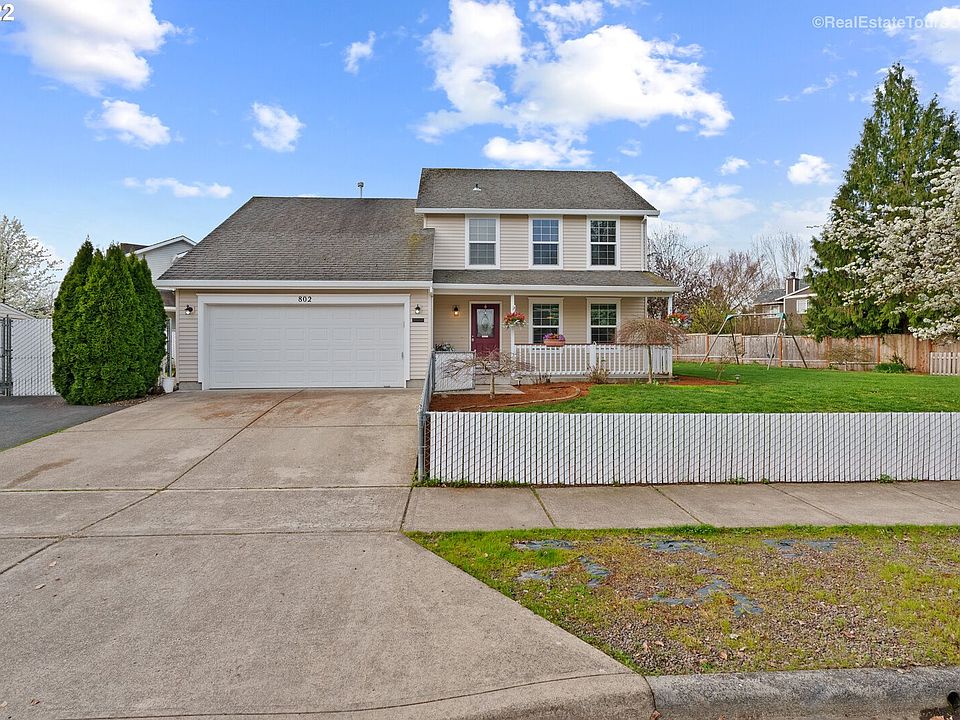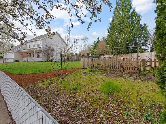 Huge, fully fenced, corner lot with garden area, play structure and fire pit. Extra parking in driveway with RV parking behind fence. Updated kitchen with stainless steel appliances, brand new roof and gutters, appliances are just a year old. No HOA in beautiful established neighborhood close to parks, shopping, restaurants, wine country and quick access to HWY 26.