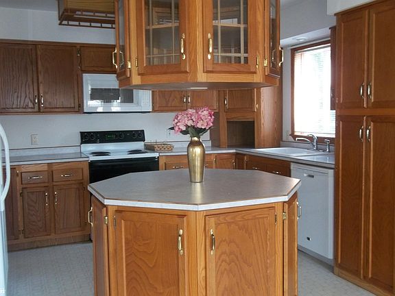 Water view from 2 bedrooms and back deck. Pond has fishing. Master bedroom has walk in closet and 3/4 bath. One bedroom opens to back deck and has sliding doors. Kitchen, dining room and living room are open to each other. Kitchen features round island with storage under it and glass doors in cabinets above, separate tall pantry. Deep double sink under the window and dishwasher. The dining area has a window seat with storage under it. Living room has a bay window. Master bedroom features its own bath and a walk-in closet. The double garage has automatic opener and a wall of cabinets, open and closed.
