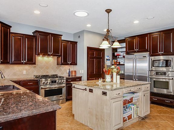 Spacious executive ranch home in private setting! Custom built home offers inviting living room (vaulted, columns, gas fireplace w/marble), formal dining (cherry hardwoods), gourmet kitchen (granite counters, center island, stainless appliances, walk-in pantry, plenty of cabinets), mudroom (custom lockers) off 3.5 car garage, mn flr laundry, 4 season room (knotty pine), office, 3 well proportioned mn flr bedrooms including master suite (trayed ceiling w/accent lighting, walk-in shower, walk-in closet). Finished lower (theater room, 4th BR), low maintenance deck, patio & relaxing waterfall.