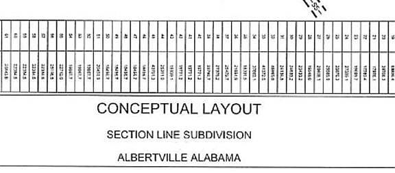 EXCELLENT DEVELOPEMENT OPPORTUNITY INSIDE CITY LIMITS OF ALBERTVILLE WITH APPROX. 40 ACRES+/- . PROPERTY HAS SEWER AVAILABLE & ON PROPERTY. CLOSE TO SCHOOLS, DOWNTOWN AND SAND MOUNTAIN PARK & AMPHITHEATER. CONCEPTUAL LAYOUT HAS APPROX. 58 AVAILABLE LOTS. **all info incl schools/acreage tbv by pchsr**