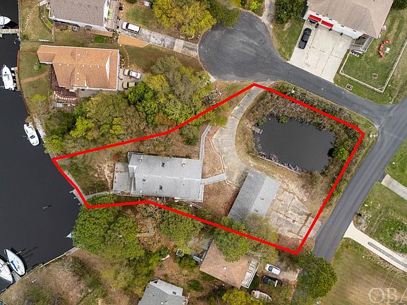 Incredible property consisting of 3 lots, approximately 21,000 Square feet in size with 60 feet of canalfront on Tartan Inlet located in the waterfront community of Colington Harbour. This property includes a private pond, 4 Bay 46 x 26  detached garage and home over 2,200 square feet in size with 3 bedrooms/2.5 baths. Being a reversed floor plan, the top floor includes a large open kitchen/living area which opens up to a 28 X 10 sunroom looking out over the sound. This floor also includes the master bedroom with an office with views of Tartan Inlet. A half bath with washer/dryer hookups are located on this floor for convenience. The first floor has 2 bedrooms and 1 full bath which is Handicap Friendly. Also in place is a handicap ramp and lift which goes to the 2nd floor. There's a large  living area on this floor as well with it's own bar and wood stove for ambiance which open up to a large deck for outdoor entertaining. The HVAC was replaced in 2016 and the Tankless water heater was installed within the last 2 years. Call today, to view this unique property!!!