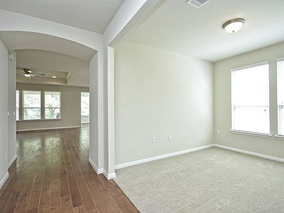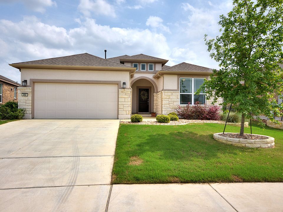 Three years new pristine Abbeyville floor plan with hardwoods & hard tile throughout--family room has tray ceilings with a sun room off the dining area--kitchen features a gas cooktop, pull out shelving, raised dishwasher & quartz counters--2 bedrooms & a flex room/study--bedrooms, living room & sun room have ceiling fans--very private back porch faces south & has retractable screens--property is fenced & has large oak trees in the back yard!--hot tub does not convey & will be removed--easy to view!!!