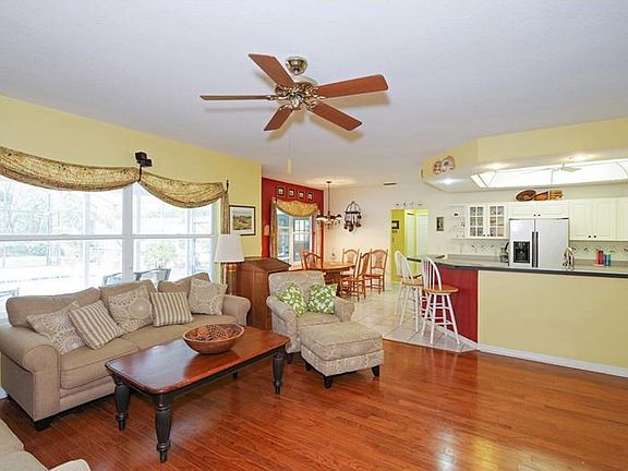 Welcome Home! Come relax on the porch swing or the rocking chairs on the large front porch. This beautiful custom 4 bedroom, 2 bath home offers over 1800 sq. ft. and a wonderful large screened in pool. From the front Foyer you will appreciate the hardwood floors and the open floor plan. The large Kitchen, Family Room & Dinette all overlook the 30' x 18' pool with waterfall!! Family Room has brick wood burning fireplace. The split bedroom plan gives privacy to the Master Suite. Master Bath has double sinks, shower and walk in closet. The 32' Lanai offers so much covered space to entertain family & friends. You will find that this area will become your outdoor living space year round. Easy living in this peaceful neighborhood. You will feel like you are in a private paradise yet you are only a few minutes from shopping, restaurants, schools & major roads.