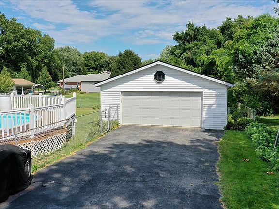 Nice Large One Story Home on almost a Half Acre of ground, Fenced Yard, 2 Car Oversized Garage 32x24 w/ above ground Pool! Nestled on the bluffs of Hill Road in Caseyville Illinois, you will find this Gem! Large Rooms, Beamed Ceiling Family Room w/ sliding doors to composit pool deck overlooking large fenced yard. Fresh Landscaping in front yard, manicured lawn, large driveway for parking. Laminate flooring, Attic Fan, Vinyl Windows, Decorative Door Trim, Alarm. Celing Fans in bedrooms, Living room and Family Room. Approximate Ages: Roof 12yrs, Water Heater June 2022, Dishwasher 2yrs, Stove,6 yrs, Refrigerator 2yrs, Furnce and AC 14yrs, Septic pumped August 2022, Electric 100 amp Breakers, Shelving and Cabinets in Garage.