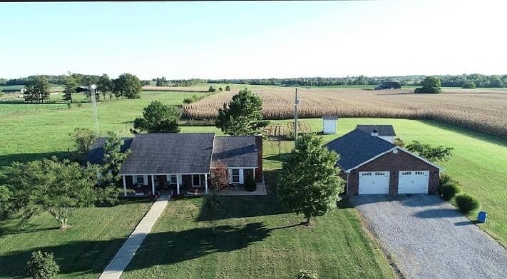 Great Location 1.5 miles off HWY 127. This beautiful brick ranch home was built in 2011 and situated on 3.6 acres and surrounded by gorgeous breathtaking farm land. The home has been freshly painted and consist of eat in kitchen with recessed lightings, spacious living room, 3 large bedrooms, 2 freshly tiled bathroom floors and a large utility room with a 2 car detach garage. The garage has extra space that would be awesome for a man cave just needs flooring and drywall (approx. 420 sq ft) and is already equipped with a wall mounted heat and air unit. The craft shop or workshop has a long work bench with a front deck. Also has a garden shed with a large window and a planter bench.