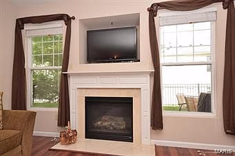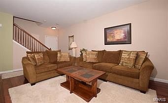 Elegant living in this stylish townhouse - nothing to do but move in your furniture and start enjoying your new home! Beautiful kitchen boasts plenty of counter space, gorgeous 42" shaker style cabinets, Whirlpool appliances and center island. Modern and open floor plan accented nicely by newly installed flooring, 9' ceilings, gas fireplace and plenty of natural light. 2nd floor features 2 spacious bedrooms, over sized loft area and laundry. Bedrooms each have lush new carpet - master also features ceiling fan and walk-in closet. 2nd floor laundry offers convenience you'll be sure to appreciate. Enjoy the outdoor living space provided by your very own concrete patio surrounded by the professionally landscaped grounds - perfect place to enjoy the crisp fall weather. Truly a great community - private, well kept and located just moments from I-70, Historic St Charles, the entertainment of Main Street, Lindenwood College, shopping and parks. Location: Ground Level, Interior Unit