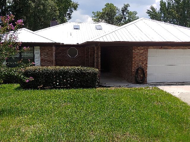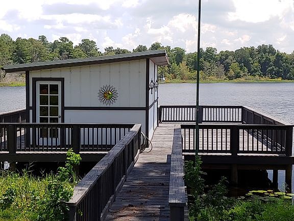 Solid brick 3 bedroom, 2 bath home on no-wake Clearwater Lake, connected to Lake Grandin by canal with access to fishing and water sports. Boathouse with boat lift and extra storage has an attached dock. Master bedroom bay window view and large porch with view of the lake. Large back porch has ceiling fans but no HVAC. Vaulted ceiling in sunken family room with two skylights. Skylight in master bathroom. Metal roof installed August 2017. Well water with Culligan water softener plus chlorine injector pump.