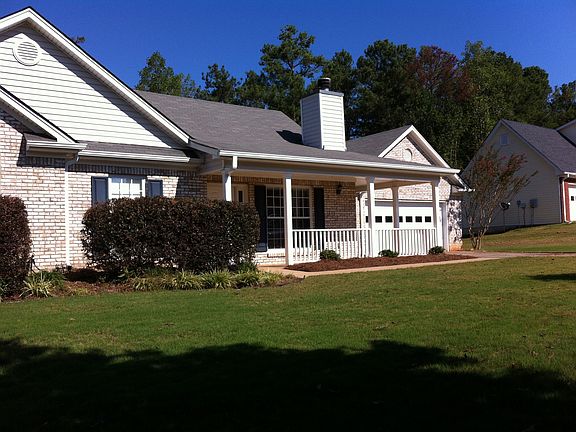 Charming 3 bedroom, 2 bathroom ranch with rocking chair front porch. Huge private corner lot with wooded back yard. All brick front. Brand new interior paint and carpet. Wood floors in living room and kitchen. Must see! Move in ready!