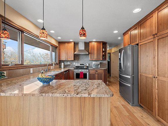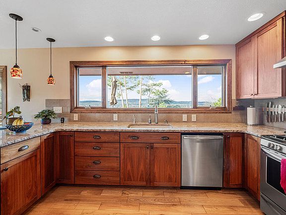 Beautiful, well maintained home with updates throughout! View of Mount Shasta and Lake Ewauna from the custom wood picture window in the kitchen as well as from the large deck. Features include; hand scraped hardwood floors, custom wood staircase and an abundance of windows for natural light. The primary bedroom and custom bath is located on the main level with a French door to the deck, soaking tub and tile walk-in shower. The kitchen has granite counters, custom walnut cabinetry, pantry & stainless steel appliances. On the lower level, are two bedrooms, a full bath and a bonus room. You will also find a gas fireplace on each level, a large patio, water feature, greenhouse, shed, gorgeous landscaping and RV/boat parking. Close to OIT and Sky Lakes Medical Center.
