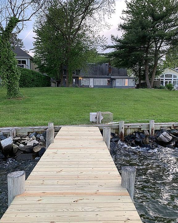 Gorgeous waterfront 3/3 home, 2,628 sq ft, 3 miles from Bay Bridge. Perfect for a family or vacation home. 2 spacious attics, living/dining, workshop, Sun room, River room, 3 additional rooms that could be used as an office, craft room, etc. New pier. Wooden decks with landscaping, exterior shower, detached shed.