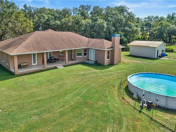 WANT A HOME IN THE COUNTRY?! Then welcome to this 4 bedroom 2 bath elegant home with city convenience. Situated on 4+ fenced acres. 24x24 Detached garage, insulated and 220 power . One acre fenced off with a 2" well for irrigation, how does your garden grow? Low E double paned windows and extra foam filled walls to keep your energy bills low. Central Vac makes clean up a breeze. Enter home with gracious foyer that says "Welcome" . An inviting LIVING ROOM with French doors lead to lanai that overlooks beautiful pastures. Dinner parties in the DINING ROOM works for 2 to 10! 12ft soaring ceilings and room to spare for buffet and china cabinet. Heart of the home KITCHEN w/ walk in pantry, plenty of cabinets and granite counter space. Pass through window to 38x10 lanai that is perfect for BBQ for a crowd. Appliances included. Snack bar serves as impromptu meals or place for afternoon homework. FAMILY ROOM and kitchen combo is definitely for the family to play games, tv or relax in front of a crackling fireplace. MASTER BEDROOM Retreat with room enough for a sitting area, French doors lead to the lanai. Be prepared to be spoiled in the MASTER BATHROOM. Free standing tub, separate sinks, ample counter space, separate shower and closet storage space. Split bedroom plan. Come on over for a visit you will fall in love!