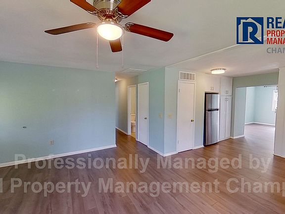 This charming 3 bedroom 2 bath home is located on a corner lot facing a cul-de-sac in the Kings Grant neighborhood. You will appreciate the open floorplan and spacious rooms the moment you step into this home. The pleasing colors, recently upgraded flooring, ceiling fans and window blinds are just a few of the special touches you will find in this home. The living room opens to the kitchen, which features granite counters, tile backsplash, stainless steel appliances, ample storage and flows into the oversized dining room. The master bedroom offers a private bath with granite counter and tub/shower with tile surround. The two guest rooms are conveniently located to a second full bath with step-in shower and granite counter vanity. The laundry room includes a washer and dryer for your use and has access to the driveway area for off street parking. Enjoy relaxing outdoors on the deck overlooking the backyard or on the large covered porch. Students and Co-signers are welcome. Dog friendly rental. We are an Equal Housing Opportunity Management Company and abide by the term of the Federal Fair Housing Act. No Cats. Dogs allowed with prior approval and required pet fees. No Smoking, e-cigarettes or vaping. All applicants over 18 years of age are subject to a background check, including criminal, credit, employment verification, and past tenancy.