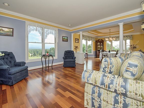 Gorgeous 4 bedroom colonial w/ breathless views from all sides of this custom built home. Amenities include gourmet kitchen w/ granite counters & ceramic tile. Brazilian Cherry wood floors in Living room & dining room. Huge master suite w/ 2 walk in closets & gas fp. Jacuzzi tub & sep. shower in master bath. Fin.lower level, 3 levels of decks w/ pool, gardens, water falls, sep. work shop w/ gar.