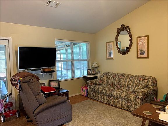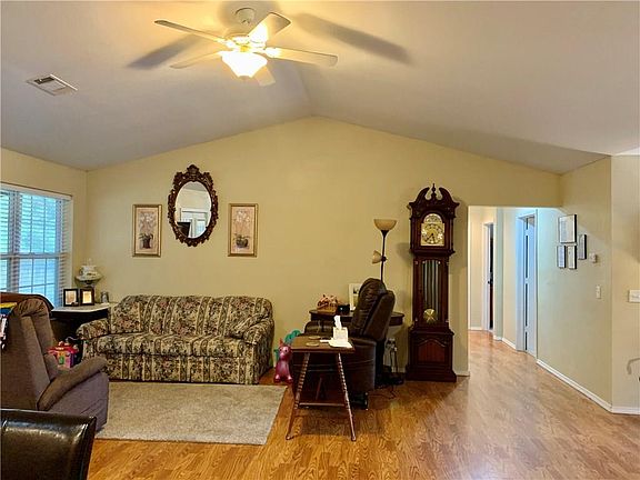 Move in ready handicap accessible home, with open floor plan , large island for entertaining,Large walk -in pantry, Cathedral ceilings complete with recessed lighting. Wood laminate flooring, Nice screened in porch, chain link fenced back yard.All electric, Both bathrooms have big upgraded handicap showers , with handrails Large hall ways.Closets have racks and built in shelving,for extra storage. Extra concrete area on side of garage ready for an Rv. 220 wiring already in place.
