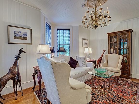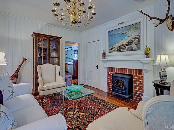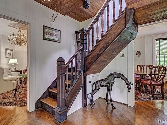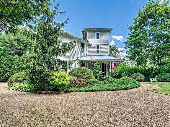 There are few opportunities to own a historic 1892 home in downtown Highlands, NC. This charming and unique home has been well maintained and is listed on the National Register of Historic Places. It is zoned for business use but is currently used as a second home that offers safe access on sidewalks to Main Street. Enter from the covered front porch into a cozy foyer with stained paneling and a winding staircase up to the second floor and third floor tower area. The living and dining rooms are off the foyer, and both offer unique shapes, special moldings, and fireplaces. Beyond is a full bath with an antique copper tub, a kitchen, and a sitting area that opens to a side porch and deck. The main suite is at the back of the main floor and has a beautiful bath. A second staircase to the second floor offers another sitting area, a full bath, two bedrooms, and storage. Off the front porch is a stone terrace and garden area. The driveway provides ample parking and has a fire pit towards the back with beautifully landscaped grounds. The washer and dryer are located in the storage building just off the deck. This property makes a great second home. It could be used for retail on the main level and living quarters upstairs or as a unique vacation rental.