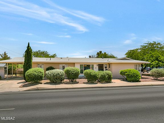 * Mid-Century 1952, this fabulous home is 4 bedrooms, 2 baths located in Central Tucson. Clean, bright and spacious with wood grain ceramic tile throughout. Comfortable great room with classic corner windows, French doors and wood burning fireplace. Extended covered backyard patio with shed and many possibilities. New roof June 2021. No HOA. Close to stores, restaurants, bus lines.