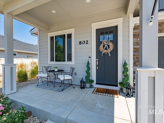 This beautifully crafted home is an entertainer's dream, featuring a massive 15x40 RV garage. The backyard with its year-round creek, offers stunning views of the Boise Foothills and provides a serene, private setting with no rear neighbors. The property includes a built-in BBQ and an extended patio perfect for gatherings. This custom built home boasts a highly desirable floor plan with a downstairs master suite and numerous upgrades. Key features include large soaking tub, Bosch appliances, 10ft ceilings in entryway, triple zone HVAC, epoxy garage floors and dedicated 50amp plug in the RV garage. This home offers plenty of space with 3 bedrooms and two bathrooms upstairs, plus a bonus room. Its an ideal setting for a larger family, multi-generational living or to welcome house guests.