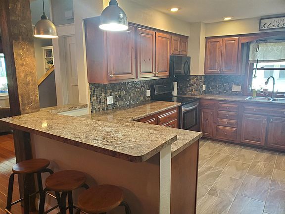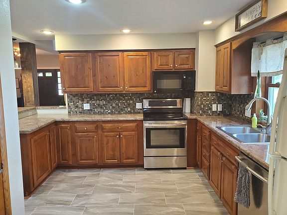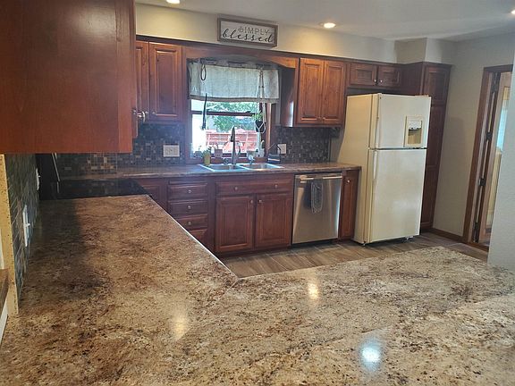 This breathtaking updated 4 bedroom home is just blocks from downtown Elkader! The main level boasts an updated kitchen with updated counter tops and oak cabinets, and a large master bedroom featuring a walk in closet, gorgeous master bath with a soaking tub. The main family room has access to a spacious patio above the 2 car garage, and the upstairs features 3 bedrooms.