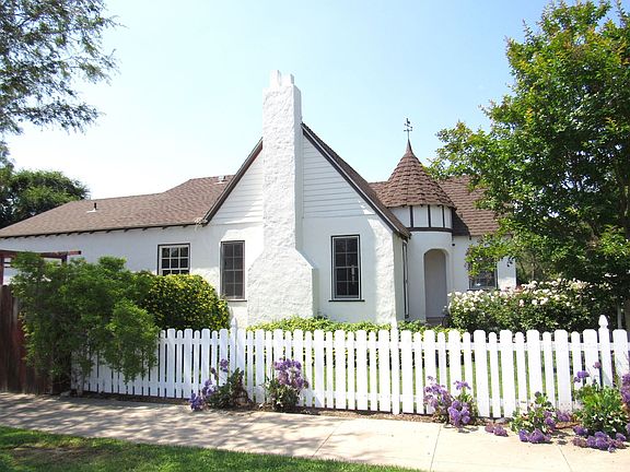 UNIQUE 1930 TUDOR with rounded Turret Entry! This wonderful cottage features 2 bedrooms & 1 full bath. Living rm boasts a cozy fireplace that adds additional charm & warmth. Separate formal dining rm has loads of windows. Gorgeous original wall sconces, lighting fixtures, hardware & hardwood floors throughout! Unique period detailing includes coffered ceilings, front french windows, picture railings & original built-in bookshelves. Full bath w/original tub, sink & porcelain toilet plus newer separate tiled shower. Walk-in California Cellar for addt'l storage & utility access. Wonderful corner lot has generous RV access or room for possible future accessory unit. Great entertaining rear yard w/large patio,separate grass area, shaded sitting retreat & mature avocado tree. The detached 2-car garage has laundry hook-ups, shop sink & workbench w/storage area. Additional upgrades include forced air heating & low energy central air plus copper plumbing. Close to Chapman U & Old Towne Plaza!