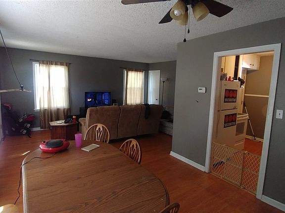 This house sits on a large corner lot with a big fenced in back yard. A one car detached garage leads to a screened in back patio. The main level is all wood laminate other than the bathroom, which is tile. The washer and dryer hookups are in the basement, which has been partially finished to make a couple of non-conforming rooms. All appliances stay with the house and transfer to the new owner.
