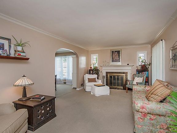 Charming Irvington home with lots of updates & abundant character! Custom stone walkway leads you to the covered front porch. The foyer leads you to the large living & dining rooms with crown molding & curved archways. Beautifully renovated kitchen features custom designed cabinets and eat-in breakfast nook. Both bedrooms feature hardwood floors and updated lighting. Two full bathrooms feature chic style. Finished basement has updated bath, huge family room, laundry & plenty of storage. Rare 2 car attached garage, storage barn, great lot with large patio & lovely white picket fence. Across from Ellenberger Park & walk to downtown Irvington. Don't let this gem slip away!