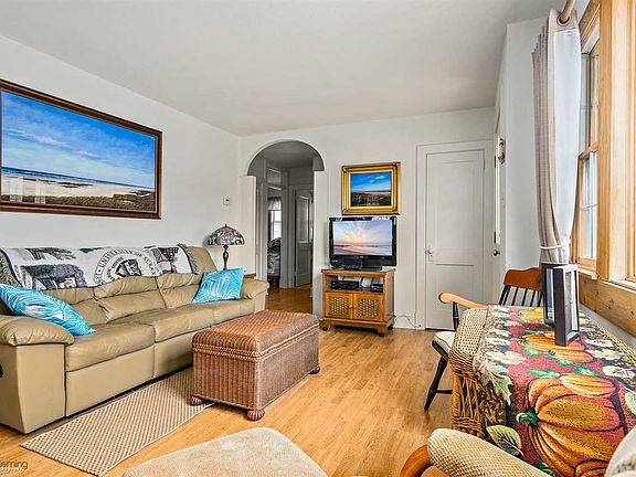 LOCATION, LOCATION, LOCATION!! Beautiful well maintained single home, one block to the beautiful North Wildwood beach, perfect for a large group. Two bedrooms and full bath on 1st floor with front porch, 2 additional bedrooms and full bath on the second floor with a bonus living area with wet bar. Second floor could also be used as an accessory apartment with separate entrance from a large Trex Deck. Large garage with plenty of room for storage, beach toys, etc. Outside shower and dressing area for convenience and a well maintained yard. Off street parking for 3 cars. Easy to show, lock box on site, call for appointment line for a showing.