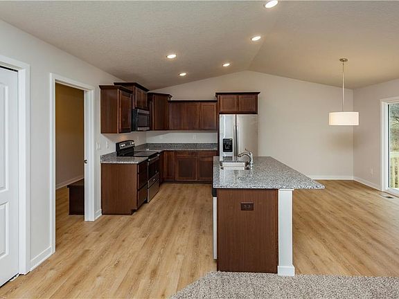 Quality construction & eye-catching details at an affordable price is what you get w/ Benchmark Builders! This NEW ranch has 3 bedrooms, 2 bathrooms, w/ 2 car garage backing to trees & a corn field. The spacious living room-dining-kitchen area has vaulted ceilings, picture window, large pantry, Waterproof LVP flooring, granite counter tops, SS appliances w/ refrigerator included, center island, rich stained maple cabinets, & glass slider door to deck. Laundry room w/ mudroom bench off the garage. Large Master bedroom for the King & Queen, connecting to its own private bathroom w/ 2 sinks, wide shower, and ample sized closet. Basement has 2 egress windows, plenty of storage space, & is pre-plumbed for bath. Other amenities: No maintenance vinyl siding, large windows, rounded drywall corners, 30-yr shingles, Tyvek wrap, 12X10 deck, tree in front yard, & fully sodded yard. Zero money down, if you qualify for USDA loan! Why rent when you can be an owner.