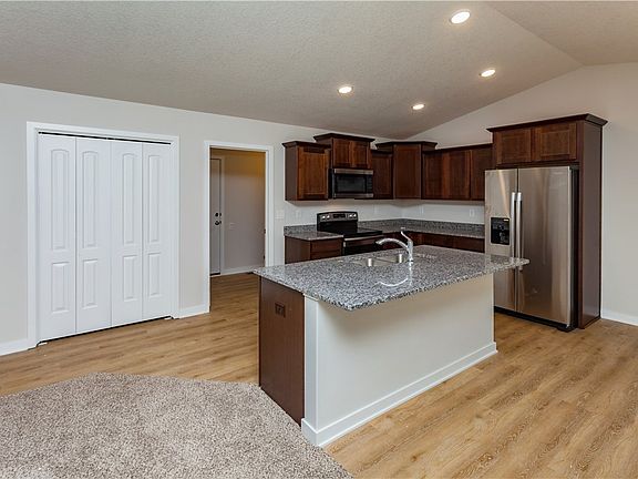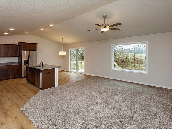 Quality construction & eye-catching details at an affordable price is what you get w/ Benchmark Builders! This NEW ranch has 3 bedrooms, 2 bathrooms, w/ 2 car garage backing to trees & a corn field. The spacious living room-dining-kitchen area has vaulted ceilings, picture window, large pantry, Waterproof LVP flooring, granite counter tops, SS appliances w/ refrigerator included, center island, rich stained maple cabinets, & glass slider door to deck. Laundry room w/ mudroom bench off the garage. Large Master bedroom for the King & Queen, connecting to its own private bathroom w/ 2 sinks, wide shower, and ample sized closet. Basement has 2 egress windows, plenty of storage space, & is pre-plumbed for bath. Other amenities: No maintenance vinyl siding, large windows, rounded drywall corners, 30-yr shingles, Tyvek wrap, 12X10 deck, tree in front yard, & fully sodded yard. Zero money down, if you qualify for USDA loan! Why rent when you can be an owner.