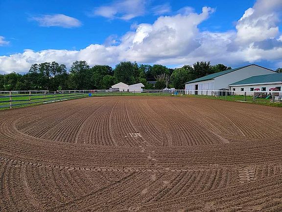 Beautiful 17.5 acre working horse farm set in a quiet country setting! 22 stall horse barn including a foaling stall that attaches to a 60' x 100' indoor riding arena. Facility also includes, 160' x 180' outdoor riding ring, wash stall, heated tack room, and security system. There are 5 large turn outs all with run-in sheds and heated water troughs, a fenced in hot walker, and two equipment garages. Enjoy the 3/8 mile oval track in the back field with a dug pond adjacent to it, and so much more! The house on the property is a clean 1997 manufactured home that has a new deck, 3 bedrooms, 2 full baths, kitchen with upgraded appliances, dining area, living room, and large office. New UV water filtration system. Additional concrete slab on the property with electric & water hooks ups for a second home.