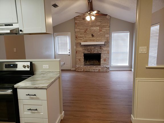 Nicely remodeled 3 bedroom, 1 bathroom Georgetown duplex minutes from the Rivery, Wolf Ranch, Blue Hole, Georgetown Recreation Center and the Square. Updated kitchen with stainless steel appliances, new cabinets, pantry and an oversized stainless steel sink. Updated bathroom features a deep tub. Luxury vinyl flooring throughout the home. All new windows in 2024. New LED lighting and ceiling fans. Washer/dryer connections and extra storage in the carport utility room. Pet friendly with large fenced back yard. No utilities included. Available July 1. $1,700/month rent. $1,700 security deposit required plus non-refundable pet deposit based on pet. No smoking allowed. Income must be at least 3 times the monthly rent. No history of violent crimes. No history of evictions. Cats and small dogs OK with non-refundable deposit based on pet. Tenant pays all utilities. 1 year lease. 1 carport space and 1 uncovered space, 2 cars maximum. Tenant maintains lawn.