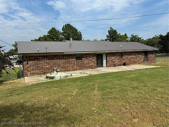 Nice brick home in Poteau, New metal roof, 3 bedrooms, 2 bathrooms, large living room with fireplace, Kitchen with dining area, nice size bedrooms, large concrete patio with storm cellar, Includes extra lot with electric and sewer.