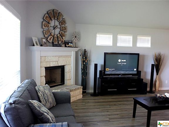 This 2146 square foot home features 4 large bedrooms and 3 full bathrooms with an open floor plan design. The kitchen features stainless steel appliances, granite counter tops and a large pantry. Vinyl plank flooring in all common areas along with a wood burning fire place and ceiling fans in every room. The master suite features a large walk-in closet and a garden tub/walk-in shower combo and double vanity. This home also includes a fully landscaped and irrigated front and backyard. It is conveniently located near shopping centers, restaurants, walking trails, and Baylor Scott & White medical facilities.
