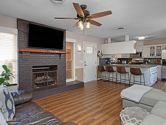 Charming brick ranch with an open floor plan, in the sought after neighborhood of Trent Woods! The spacious living area features a cozy brick fireplace in the living room and kitchen. This home offers 3 bedrooms and 2 full bathrooms, with the primary bedroom conveniently located on the main level.
