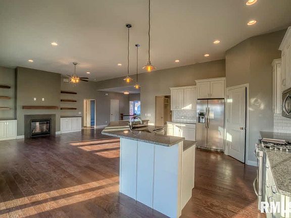 Welcome to the 2nd North Scott Schools Student Built Home! This home is a masterpiece of design & execution! Open concept w/hardwood floors & soaring 11' ceilings! A fireplace is meant to be the focal point of a great room & this one is flanked by "Leather" finished granite & handmade floating shelves. The kitchen features white iced cabinetry, gorgeous granite, white beveled subway tiled back splash & stainless appliances. Peek in the pantry & find custom wood shelving unit as well as a "Costco" door that opens into the garage for ease of unloading. Pass through a custom barn door into the laundry w/tons of granite! The master suite features a bath that will make you feel like a day at the spa every morning w/custom granite & tile. Downstairs you'll find a 45X16 foot rec room w/custom wet bar. If that isn't enough there is a huge game/workout room as well as 4th bedroom & full bath. Outside is a partially covered composite deck and don't forget about the massive 24X35 3-car garage!