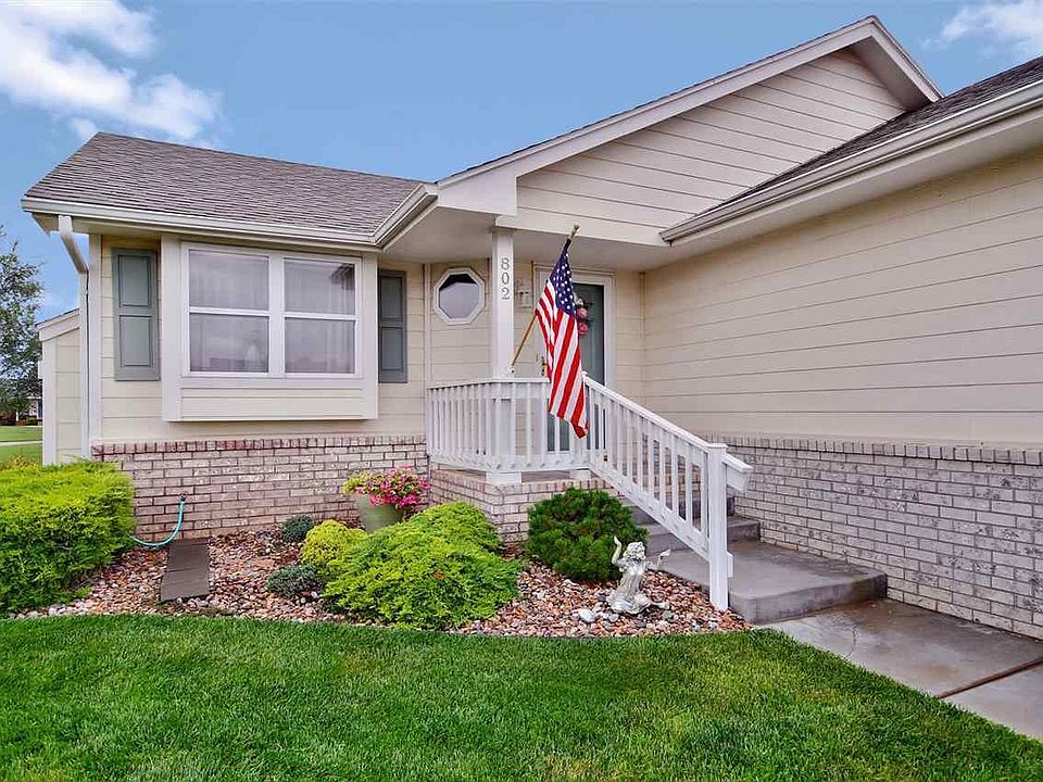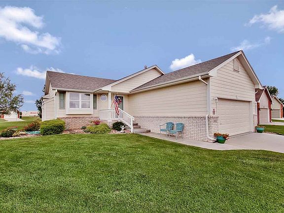 Beautiful "One Owner" Ranch home in a quiet Eastside neighborhood. The first thing you will notice is the beautiful lawn and landscaping on this corner lot made easy with the irrigation well and sprinkler system! The exterior features concrete siding, quality paint, two-level deck, and has been lovingly maintained by owners! This home is a non-smoker/non-pet home that is sparkling clean with neutral paint colors and carpet throughout. There is a nice sized living room with vaulted ceilings and a cozy gas fireplace, kitchen/dining area is well equipped and all appliances stay. You'll love the abundance of cabinets and counters and buyers will love the skylight and sunny windows! Two bedrooms with a full bath on the main floor, nice finishes, great closet space, and appealing décor. There is a main floor laundry on the way to the oversized insulated garage. Basement features include view-out windows, spacious family room, 3rd bedroom, and full bath. There is extra storage in the unfinished area as well. Buyers will be impressed with the care these owners have taken to maintain this home since constructed in 2002. Well stocked Neighborhood pond and Seltzer Elementary right across the street! Great location offers easy access to Kellogg & Turnpike! Set up your private tour quickly on this one!
